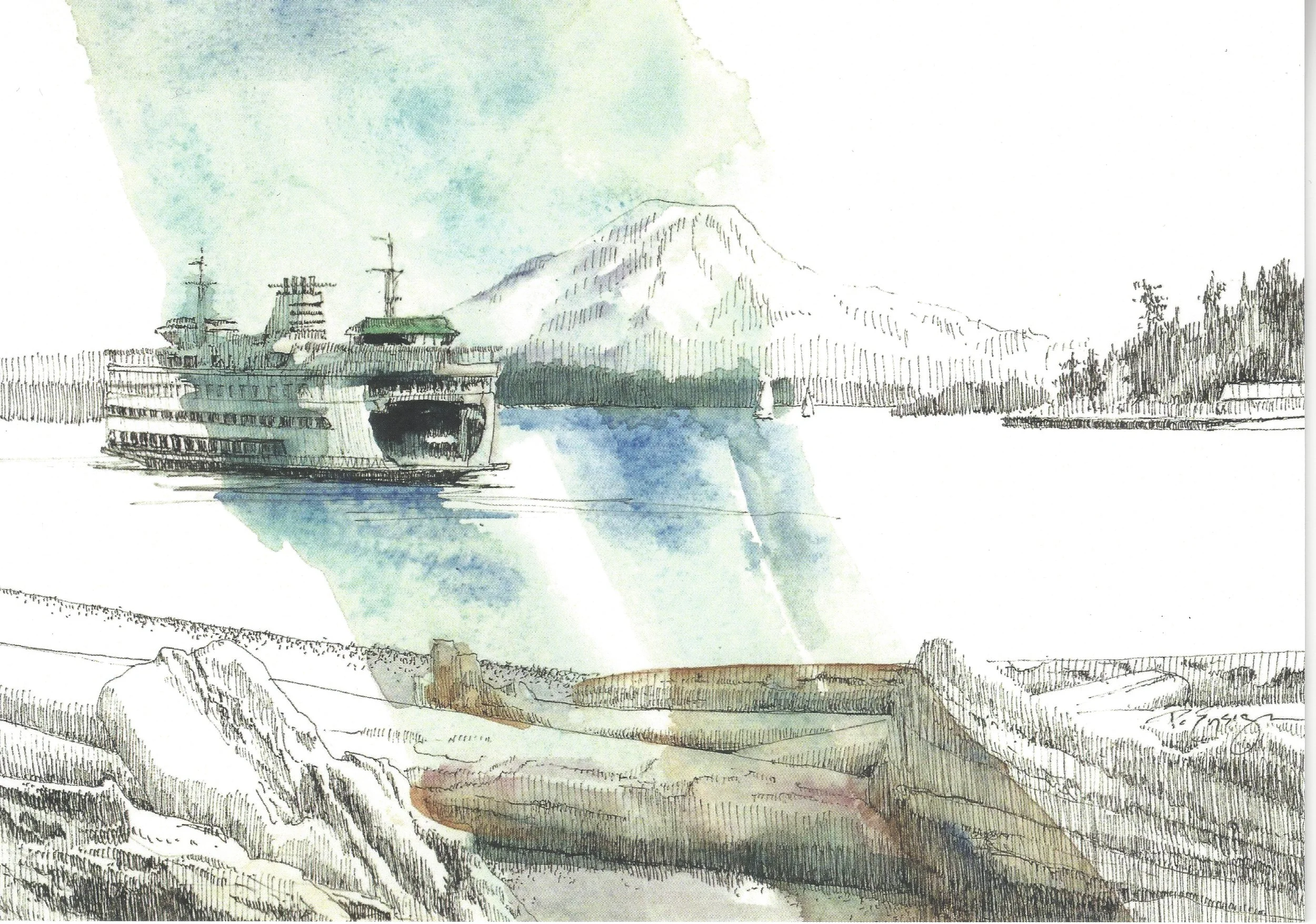 Thoughtfully printed notecards featuring Paula Ensign’s signature ink-and-watercolor style—capturing Frog Rock and beloved Bainbridge Island scenes.